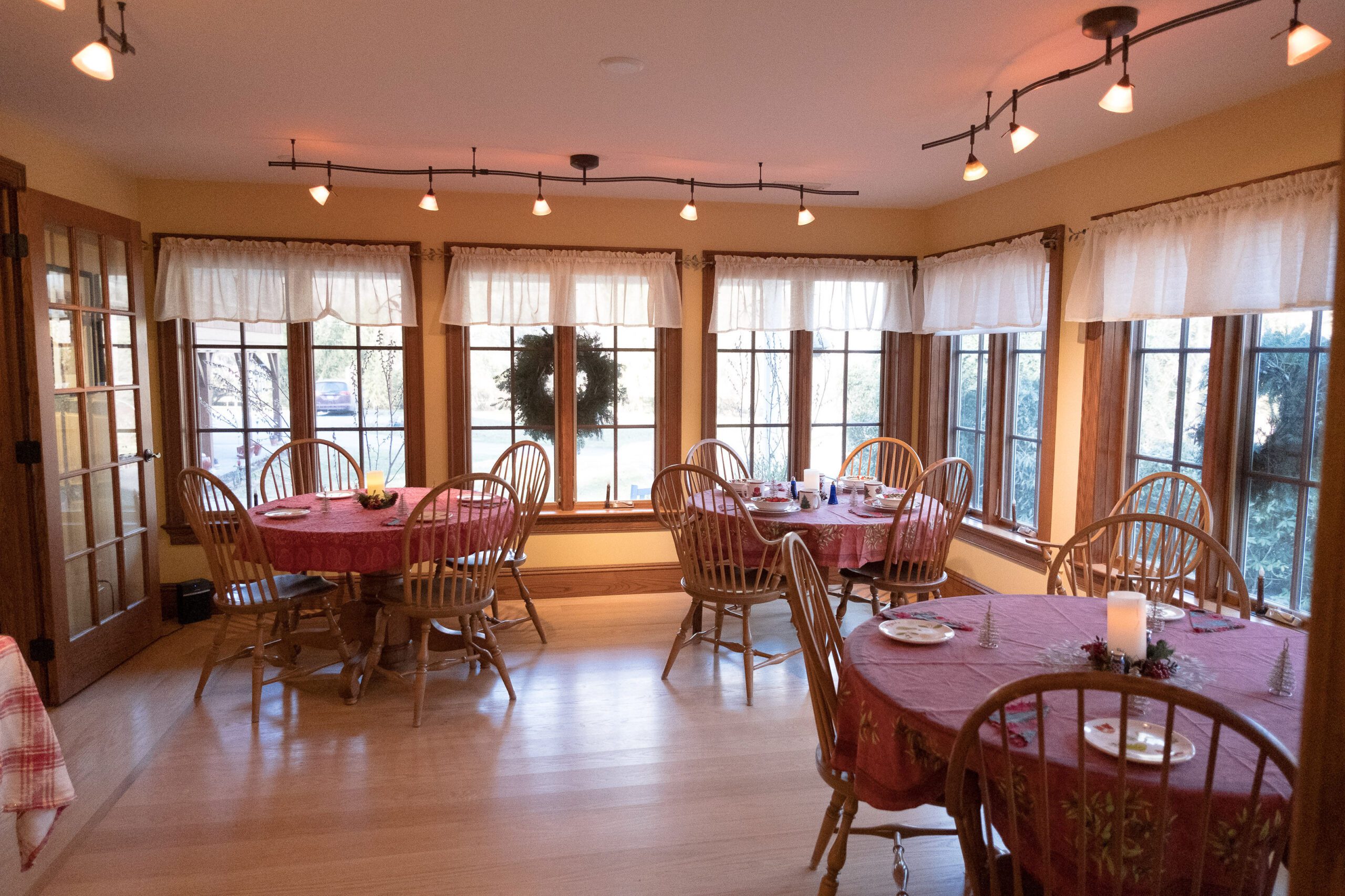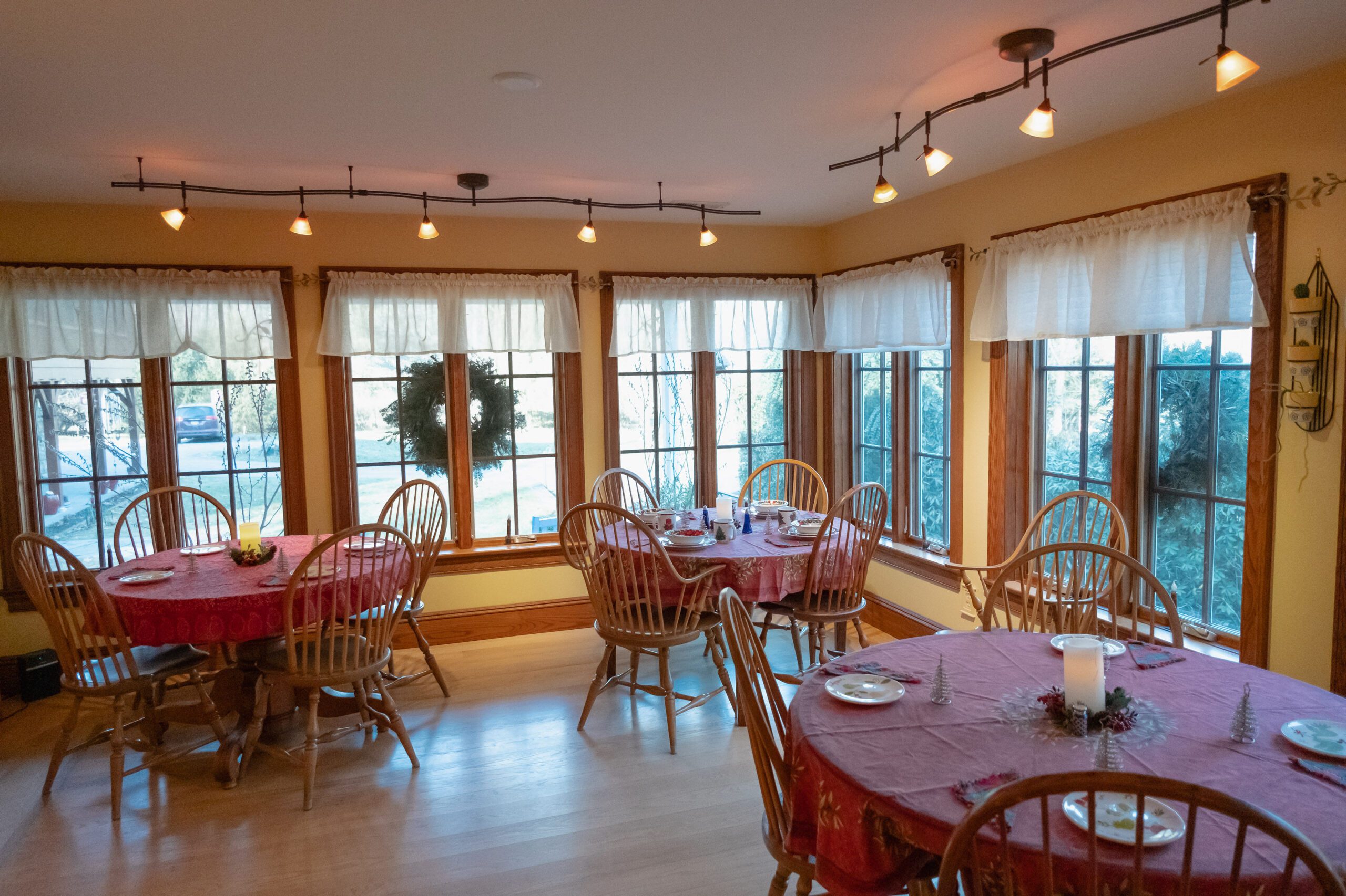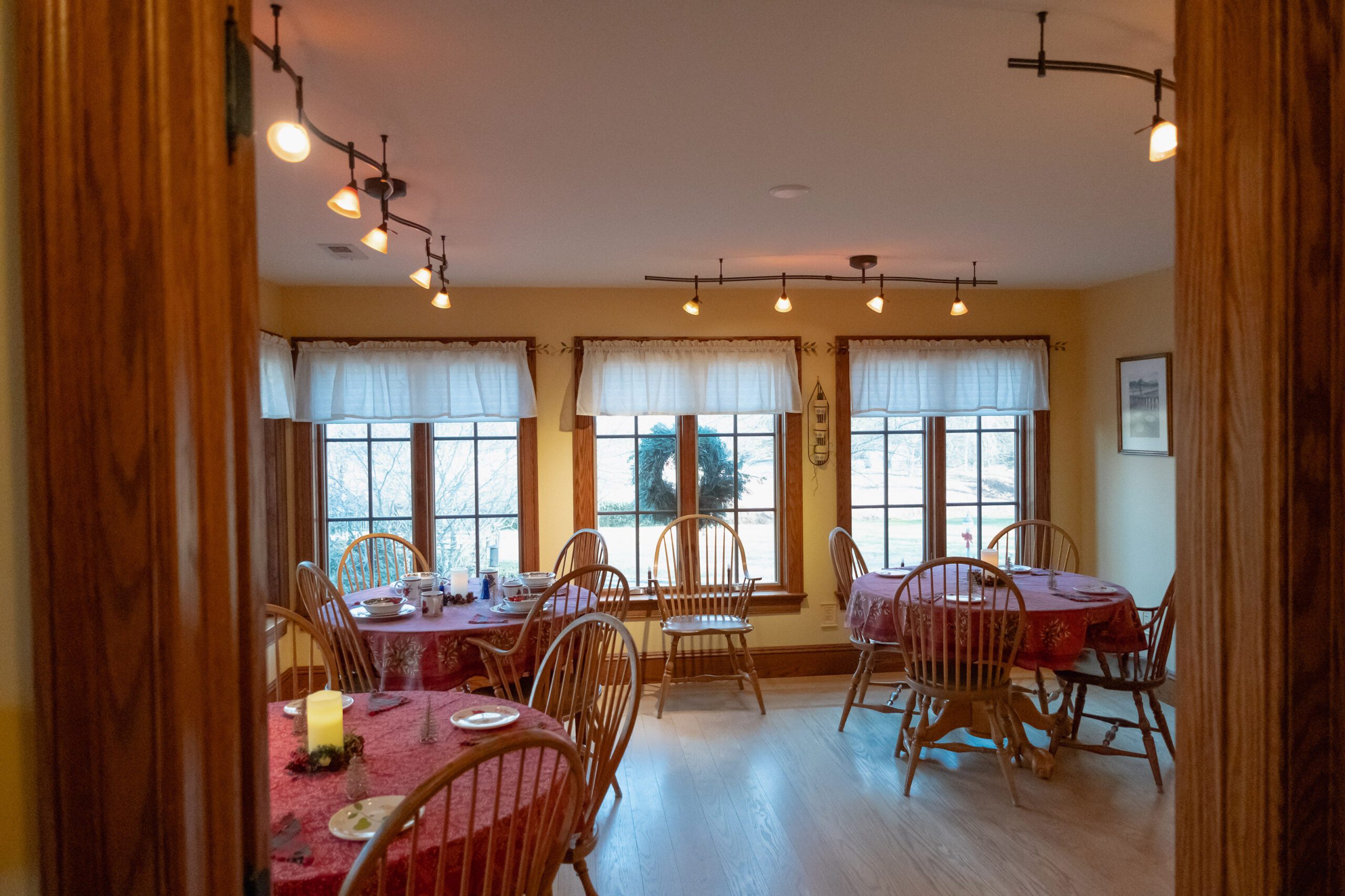 Enjoy your breakfast in our bright and inviting breakfast room, where large windows offer stunning views of the property. Multiple tables provide the perfect spot to relax and start your day right. For full details about our breakfast service and menu, visit our Breakfast Information page.