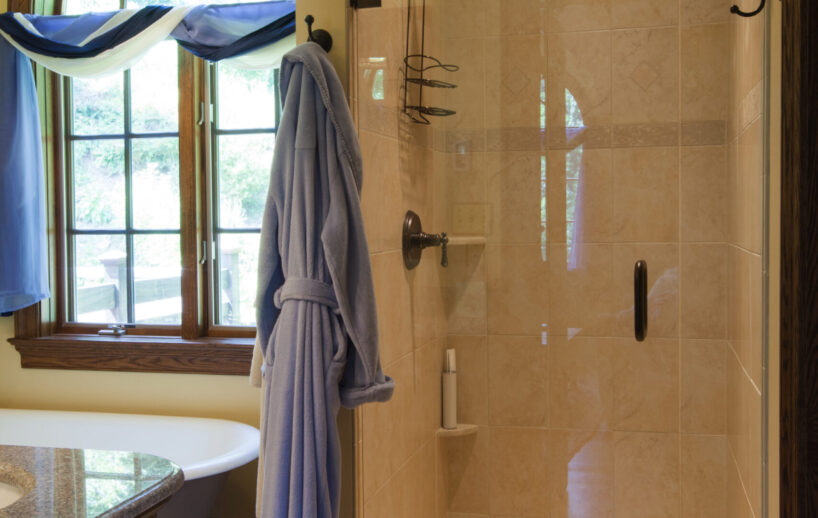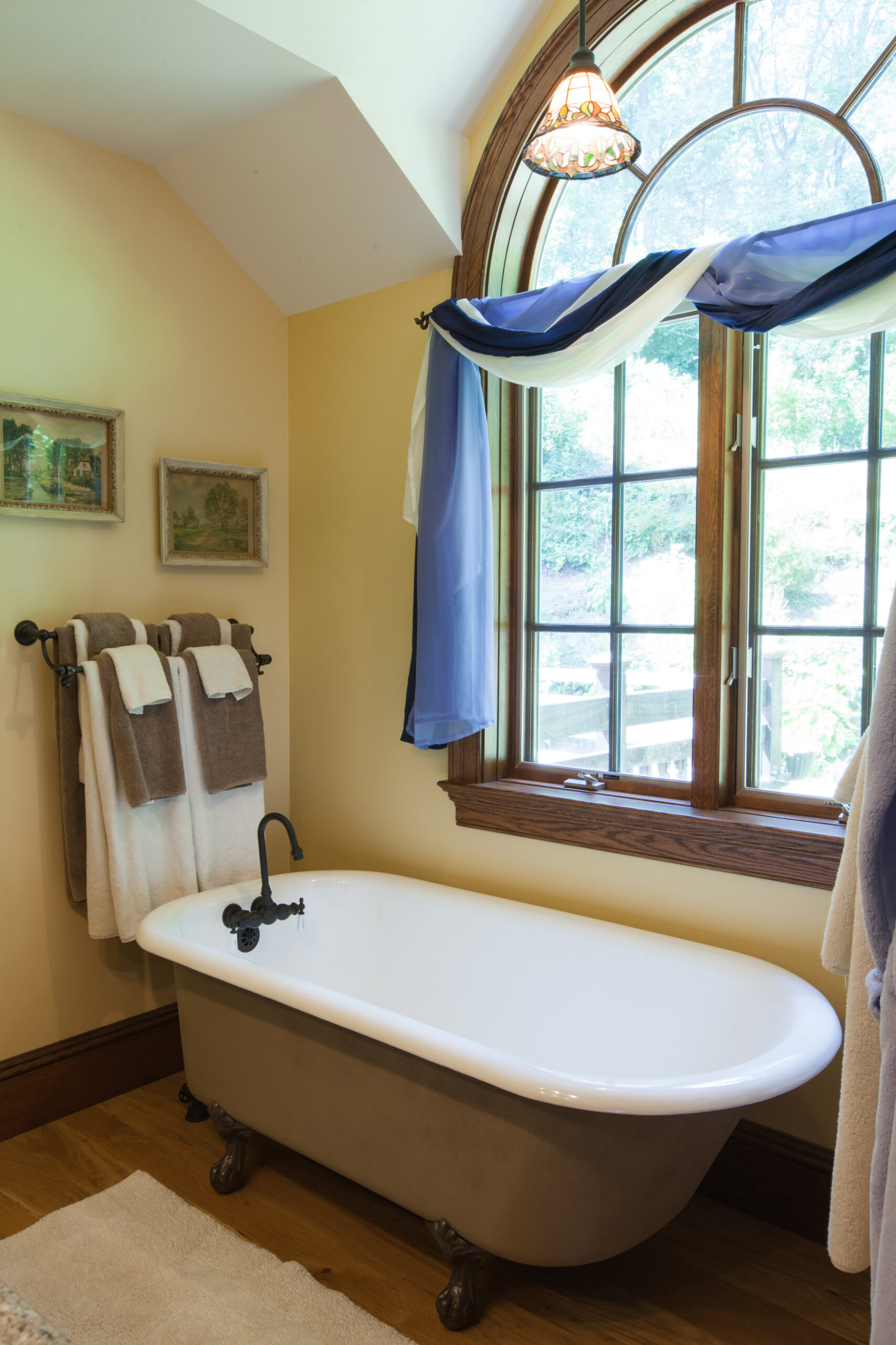 Bathroom: Separate bathroom with vintage claw-foot soaker tub and custom tiled walk-in shower