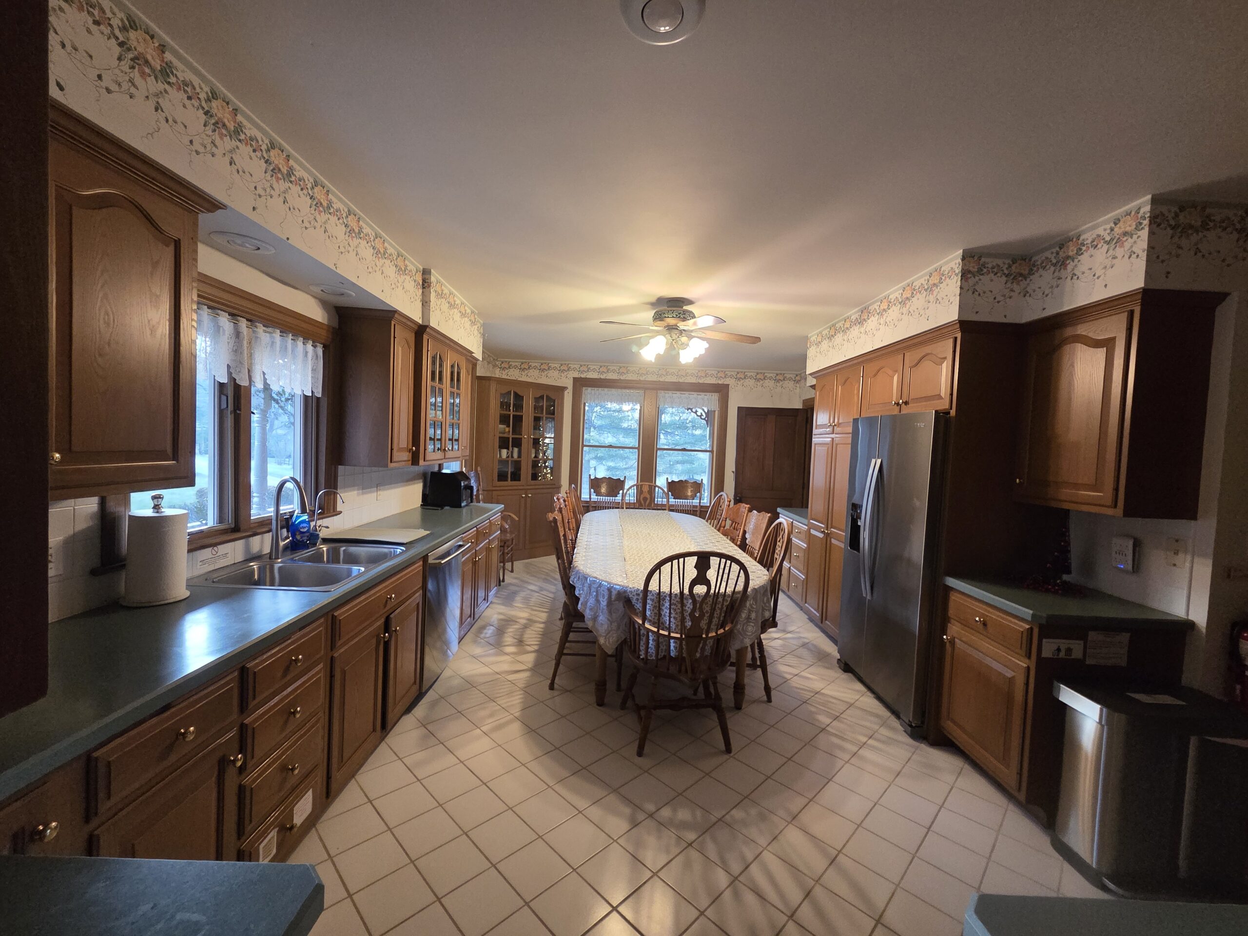 • A large, chef-style fully stocked eat-in kitchen with modern appliances