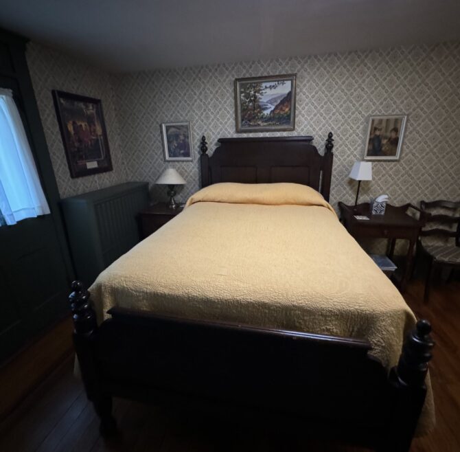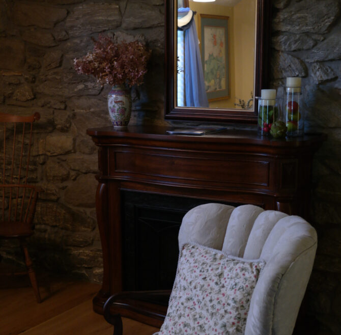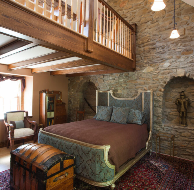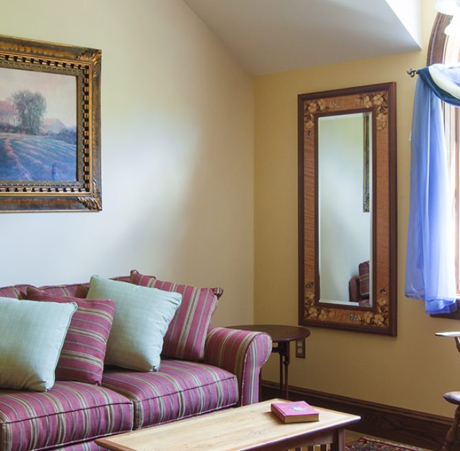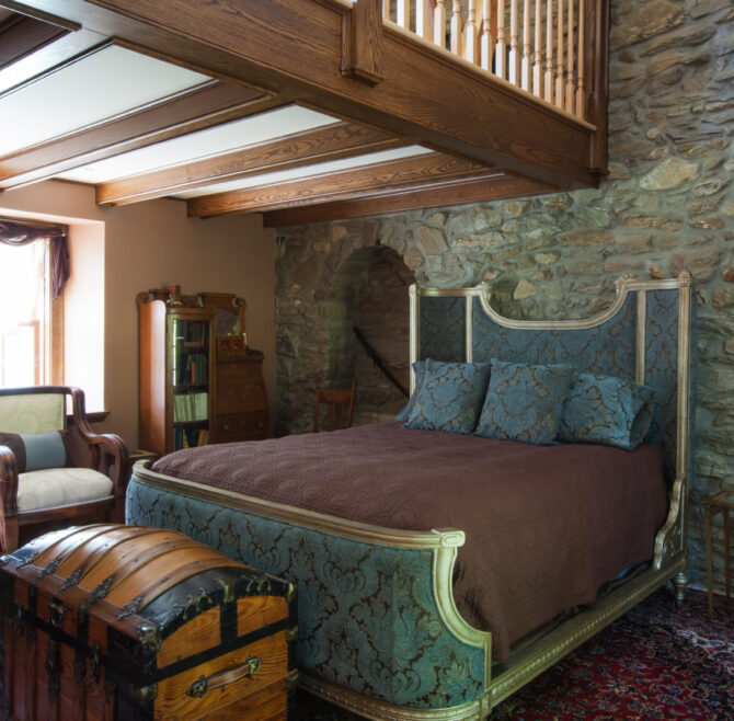 The Windows on the Stream Suite features a vaulted ceiling, loft living room with window seats overlooking the stream, a hand-carved French Provincial queen bed,…