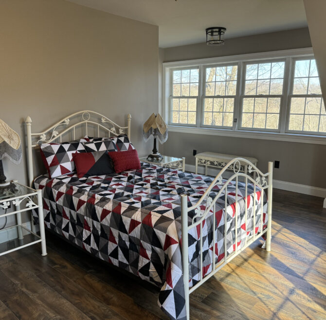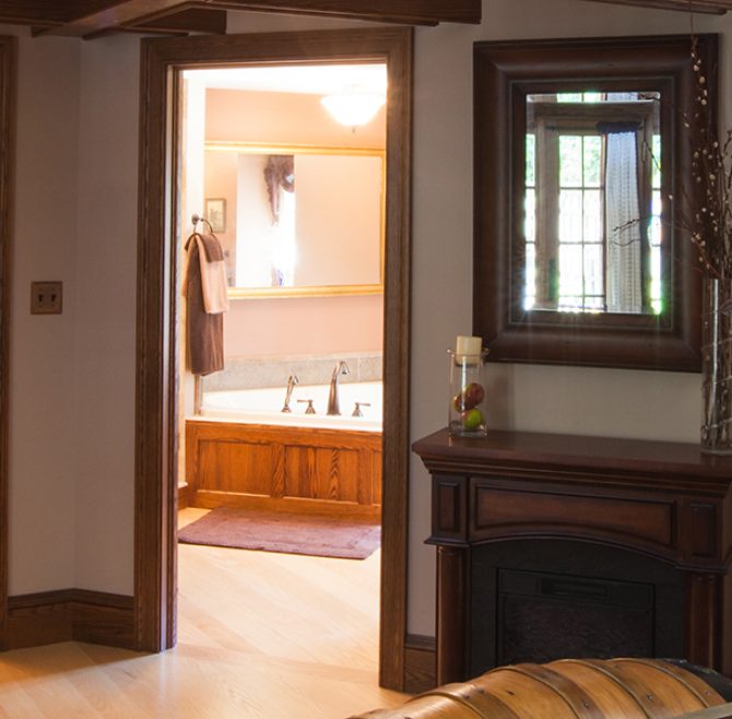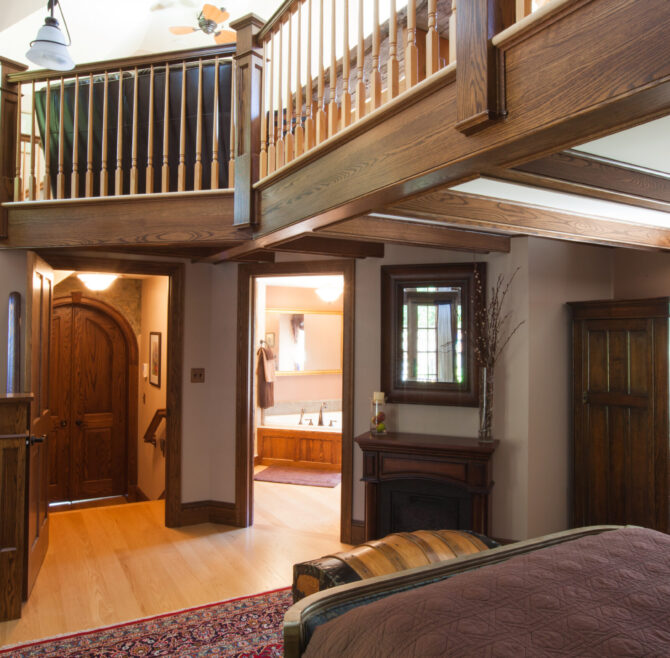 This spacious suite offers serene views of the pond and stream, with custom woodwork and a beautiful spiral staircase. Relax in the whirlpool tub for…